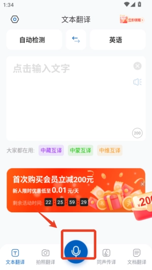 使用语音翻译功能时,按住麦克风图标讲话,系统就会自动识别语音并同步转换成文字翻译,这种方式很适合面对面交流的场景。