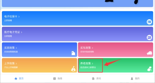 登录成功后,在应用主界面找到“养老政策”功能入口并点击。