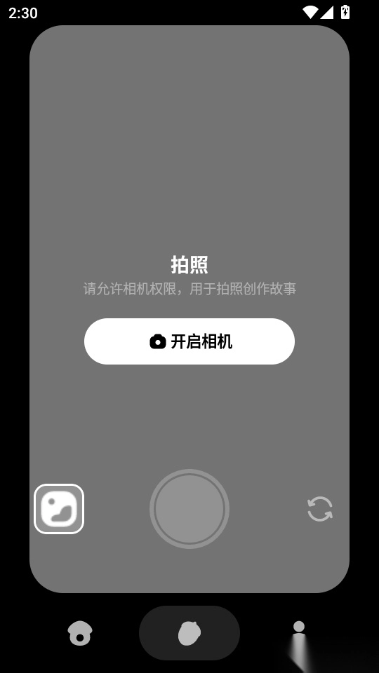 在软件首页界面,找到相机拍照按钮左侧的“相册”按键,点击进入。