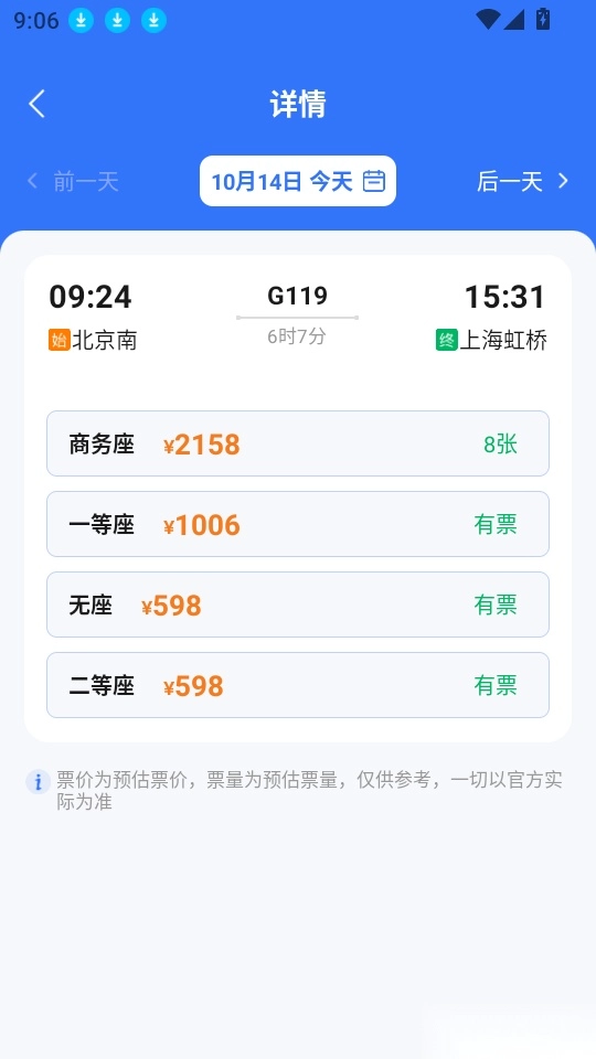 之后就能查看车票的详细信息,知晓剩余的票务情况了。