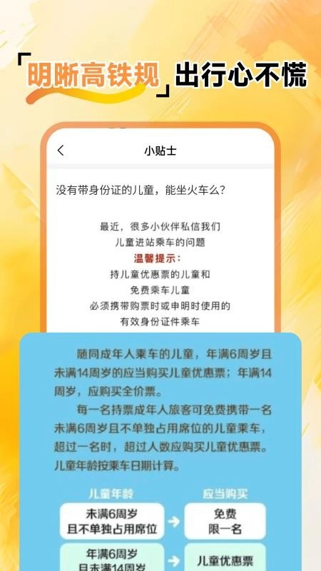 可以一键查看出行小贴士,更清晰地了解出行注意事项,从而明确高铁相关规定。
