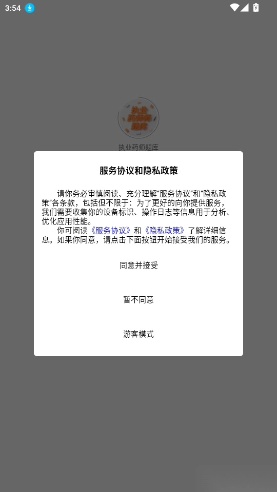 打开软件后,阅读“服务协议和隐私政策”,点击“同意并接受”按钮即可进入。