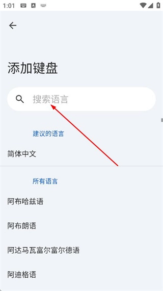 在添加键盘的页面中,点击用于搜索语言的搜索框,就能搜索想要添加的语言。