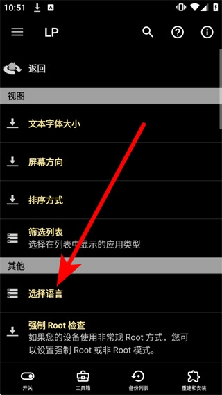 3、在应用设置页面里,找到选择语言选项并点击,进入语言选择列表页面。