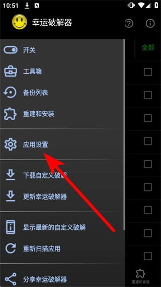 2、在侧边功能菜单中,找到并点击应用设置,进入应用设置页面。