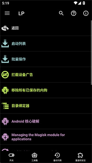 4、多元辅助功能集成,除核心修改功能外,还整合应用启动管理、数据清理、组件管理等辅助功能,提供一站式应用管理体验,支持应用批量操作,为修改提供数据支撑。