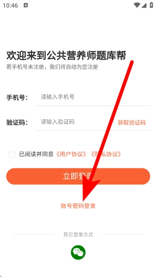 1、在登录页面,点击账号密码登录,进入账号密码登录界面。