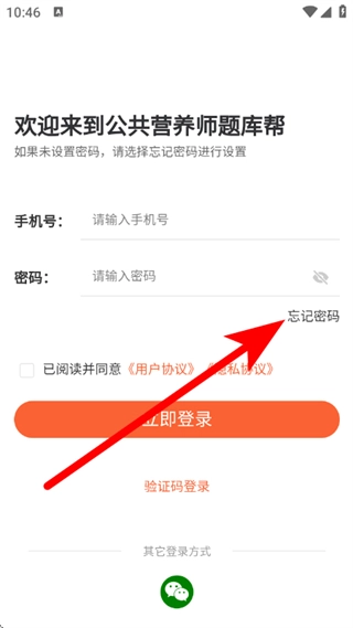 2、在账号密码登录界面,点击忘记密码,进入忘记密码页面。