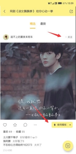 3、点击“使用模板”就能应用当前模板,要是想关注该作者,可通过右上角的关注按钮来操作。
