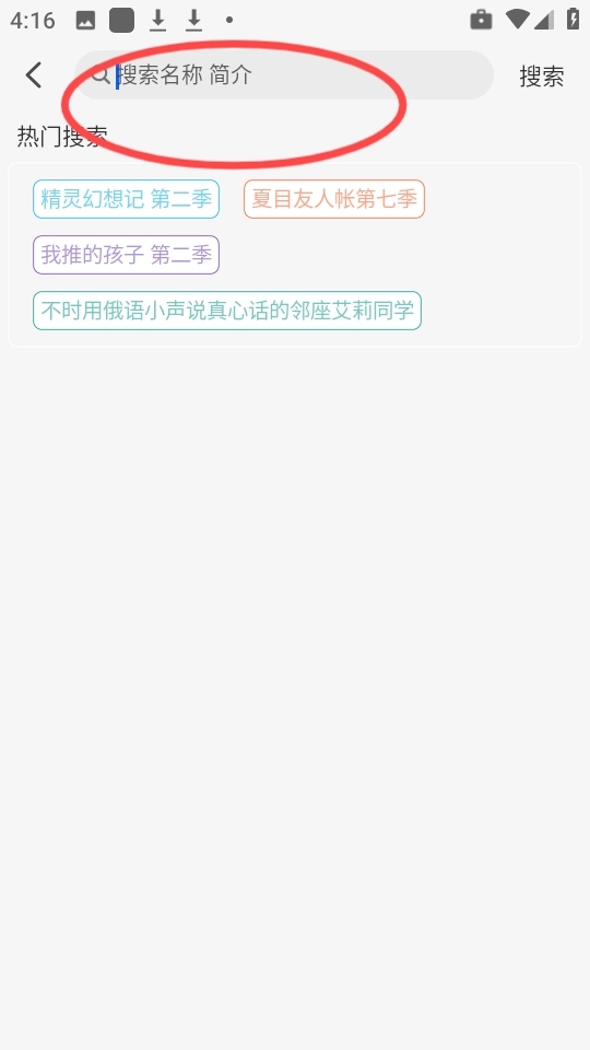 5、输入动漫的名称或简介内容,就能快速找到你想看的作品。