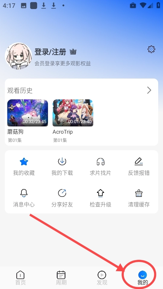6、最后点击界面右下角的“我的”板块,就能随时查看最近的观看历史记录了。