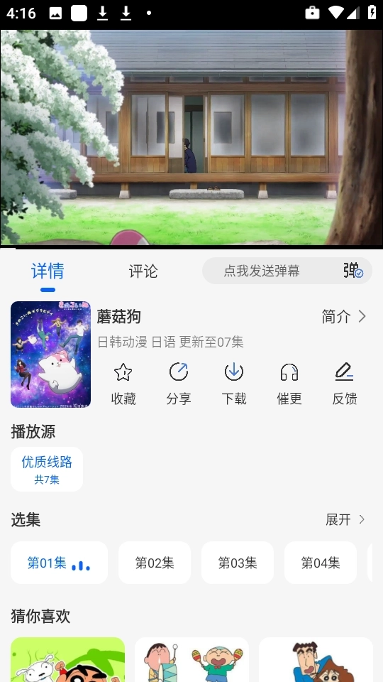 3、挑选一部自己感兴趣的动漫,像“蘑菇狗”这类,点击之后就能进入对应的播放页面。