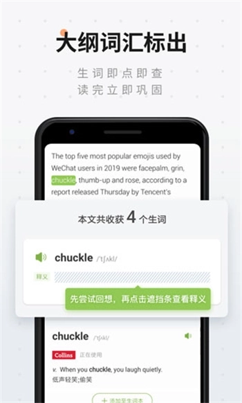 1.每篇文章都会标注出适配不同考试等级(像四六级、雅思、托福这类)的核心词汇,助力你更具针对性地积累重点单词。