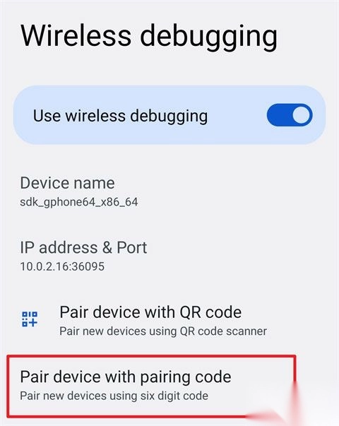 点击“无线调试”里的“使用配对码配对设备”