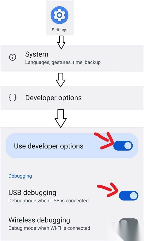 在网络上查找针对您所使用机型开启“开发者选项”的具体操作方式。