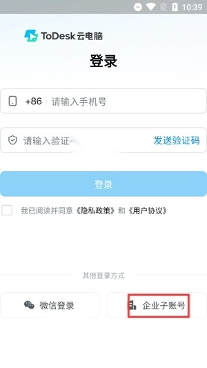 在登录界面点击下方的企业子账号登录。