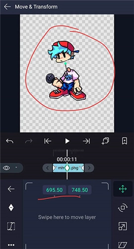 使用编辑面板(如“移动和转换")调整图层位置、颜色和其他属性。