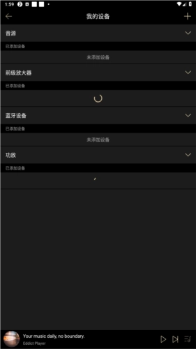 1. 打开Eddict Player主界面,你可以选择点击界面右上角的“+”,或者点击主界面中的“我的设备”。若要添加设备,则点击界面右上角的“+”。