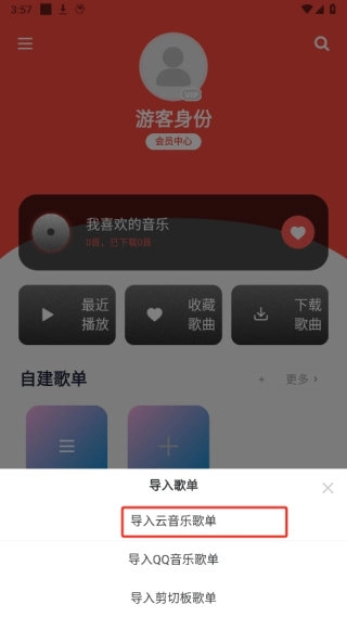 1. 在本网站安装此软件,打开后进入“我的”界面,点击“导入外部歌单”选项。