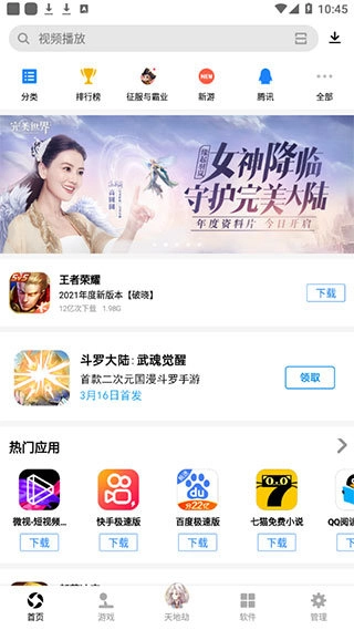 应用宝一款超级好用的汇聚了海量应用和游戏资源的手机应用市场,通过软件可以在这里进行第三方应用软件的安装,全部经过审核后绿色安全,可以任意筛选安全使用,有需要的朋友可以试试看哦!