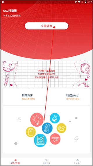 1. 先把caj转换器安装妥当,接着进入软件主界面,点击“立即转换”。
