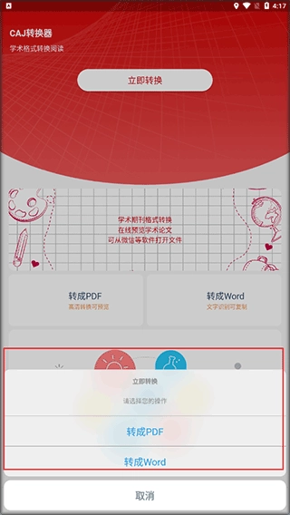 caj转换器手机版,是一款具备手机文件转换功能的软件。借助这款软件,用户能够将CAJ格式文件迅速转换成PDF或word文档,且不会对文件造成任何损坏。其便捷的功能,能为你提供更优质的帮助。简洁的界面搭配快捷的转换流程,会给你带来更佳的体验。此外,该软件占用手机内存极小,然而功能却极为强大。在这里,大家可依据自身需求进行转换,简单操作就能助力大家快速转换并保存多种不同格式的文件。软件操作简便,还拥有文件扫描识别等诸多实用功能。有需要的朋友,快来下载使用吧!