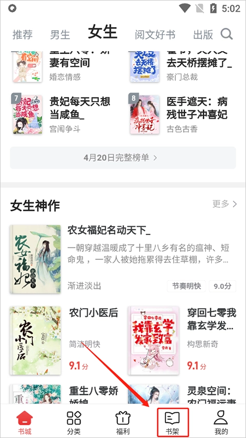 热门排行、书籍分类、书单推荐、书荒户互助。