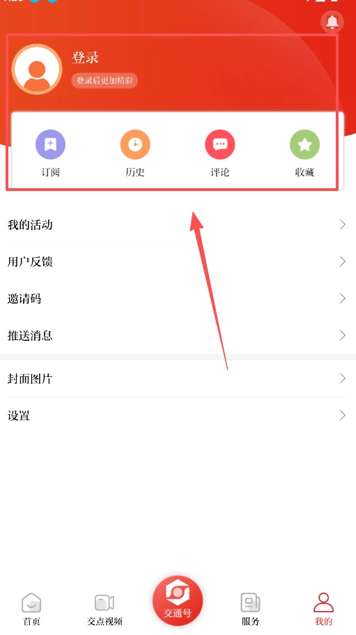 打开软件后,底部设有清晰的导航栏,包含首页、交点视频、交通号、服务和我的几个选项。