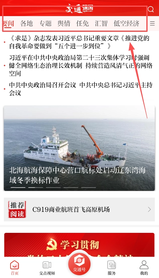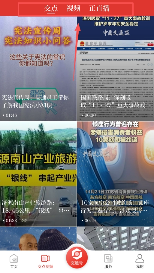 若想查看新闻与热点视频,可返回“首页”或“交点视频”页面,首页中的“交通强国”板块包含要闻及各类专题内容。