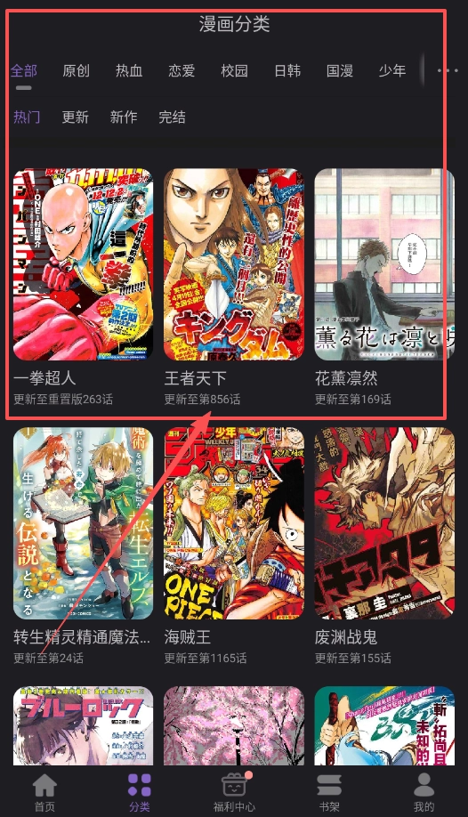 3、条形布局更利于阅读体验,各类漫画能满足不同需求,贴合个人喜好。