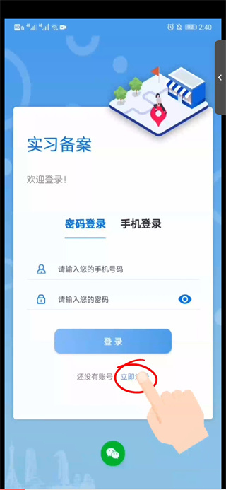1. 进入本站职校家园,在主界面的实习备案处点击【立即注册】按钮。