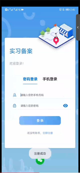 3、注册成功后,页面将返回实习备案登录界面,此时输入刚刚注册的账号和密码。