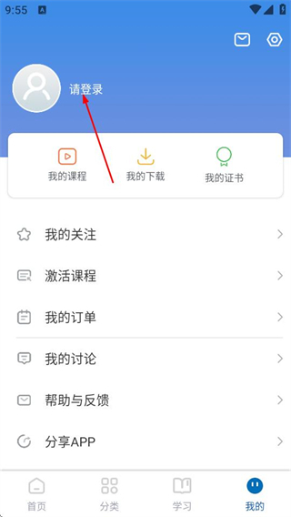 1. 于人卫慕课首页,轻点右下角的“我的”选项,从而进入个人页面。