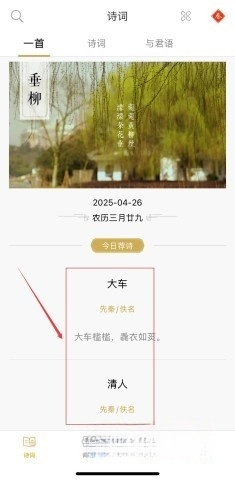 2、智能诗词推荐功能,每日依据节气推送对应主题的诗词,同时结合用户的浏览偏好开展个性化推荐,达成经典与现代的巧妙融合。