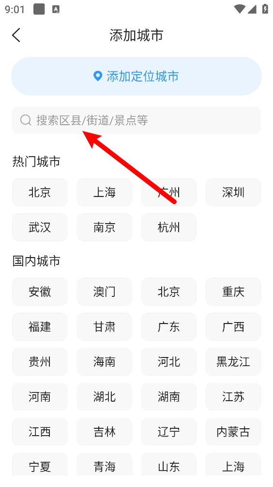 4、然后选择热门城市或直接搜索对应的城市。