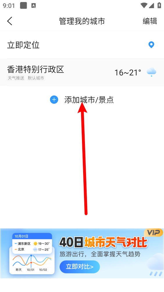 3、如图所示,点击"添加城市"按钮。