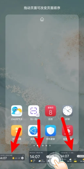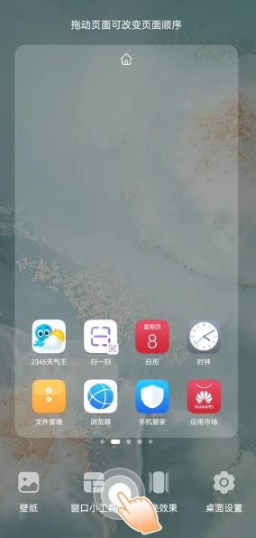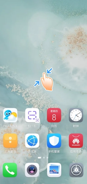 1、两指按住屏幕同时向中间靠拢,打开桌面编辑。