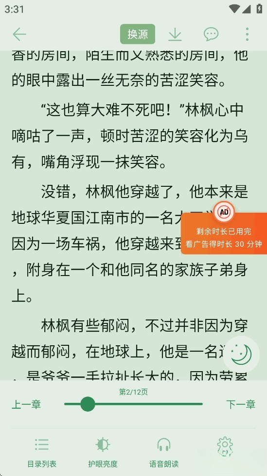 点击屏幕中间可以去换源、缓存、切换目录、语音朗读等