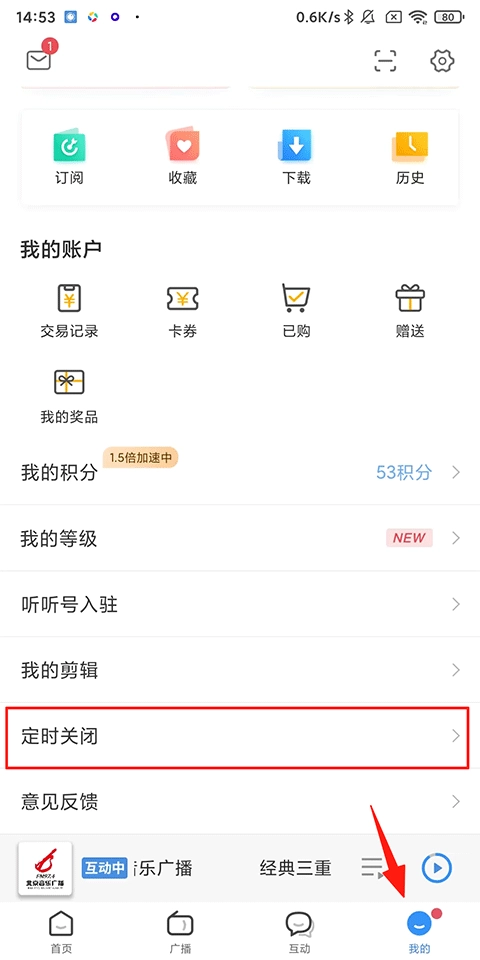1、打开听听FM,点击【我的】-【定时关闭】功能;