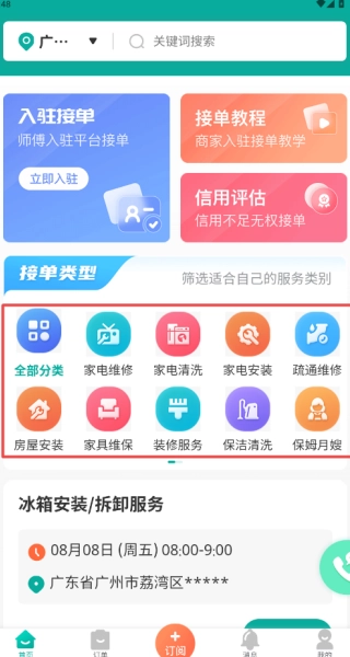 2、支持在线订阅订单类型,可自主选择关注保洁、维修等特定领域的订单,实时获取新单提醒,确保不会错失任何机会。