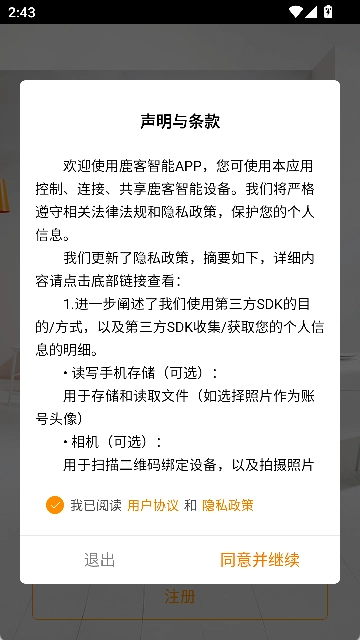 1.打开后,仔细阅读条款内容,接着勾选【我已阅读】选项,再点击【同意并继续】按钮。