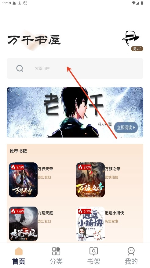 1、在首页顶部的搜索栏中输入小说名称、作者姓名或者相关关键词,就能迅速找到目标内容。