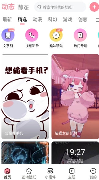 2、首页呈现了大量精选壁纸供用户自由挑选,同时还设有不少实用小功能等待用户自行探索。