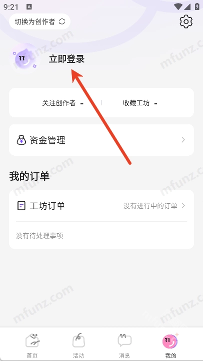 3、点击头像进入登录界面