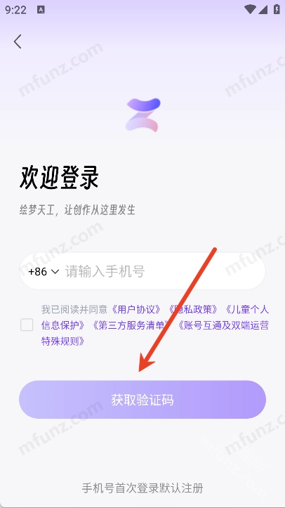 4、输入手机号和验证码即可快速登录
