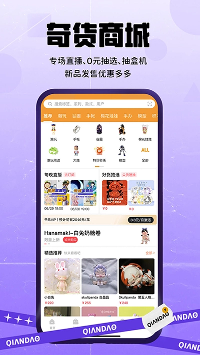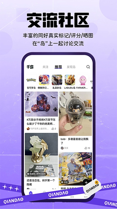 千岛手机版是一款专注与潮玩领域的社区软件,原名叫做潮玩族,有着各种有小众爱好的小伙伴们一块交流沟通。千岛手机版里有着各种潮流玩具模型手办、谷子和卡带、桌游套件等等,让你的青春生活就此展开最有趣的篇章,最热门的IP和款式让你找到排行榜的档案,和各种潮玩设计师们交流互动,参与喜欢的小时尚玩具评选,让你体验最时尚潮流的社区,快来千岛手机版吧!