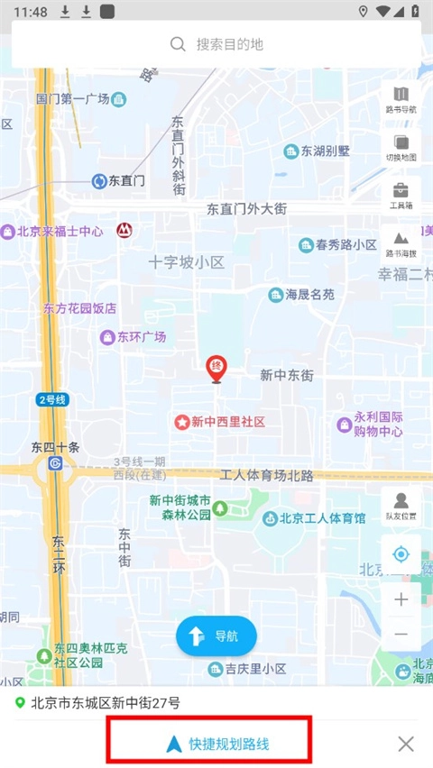 5.将终点坐标移到你的目的地,点击下方的快捷规划路线,最后点击导航即可。
