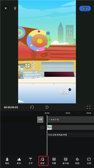 2、创建玩之后,点击音频;