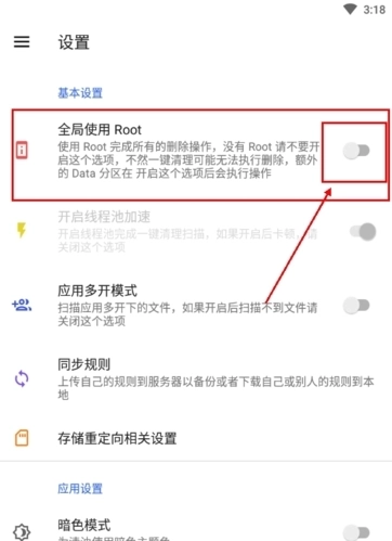 3、最后就可以看到我们所要找的全局使用Root这个选项,最后点击打开就完成啦!