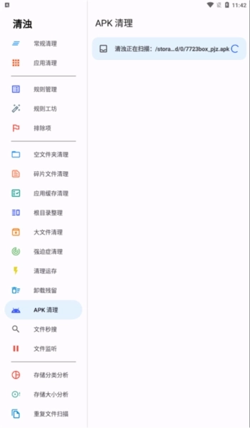 3、这里就以APK清理为例,毕竟我们平常手机中许多软件或者游戏APK是消耗内存比较大的,点击APK清理选项;
